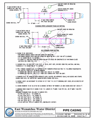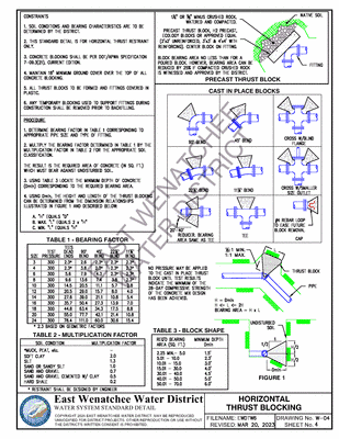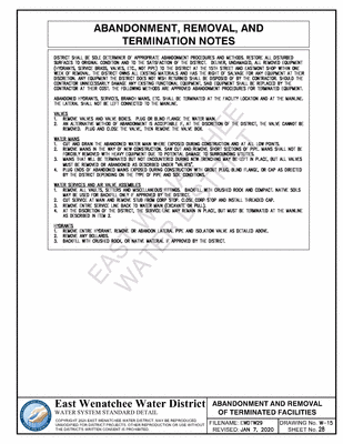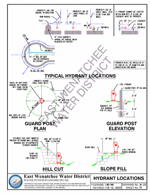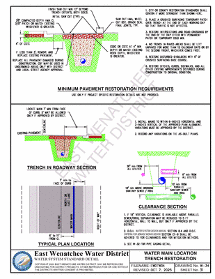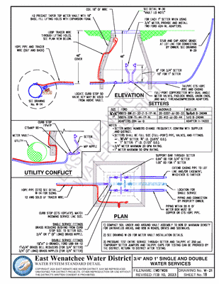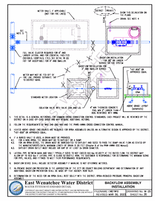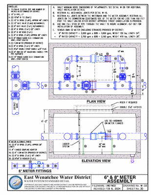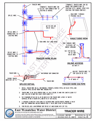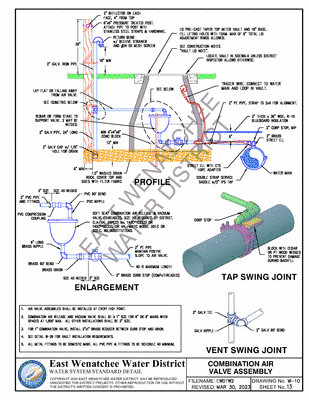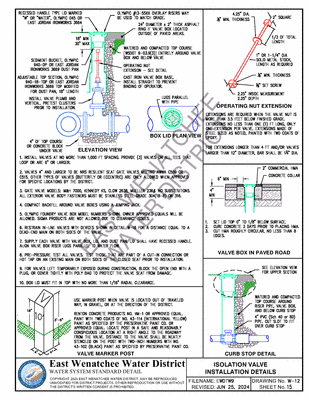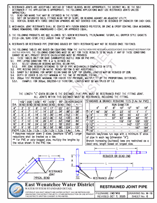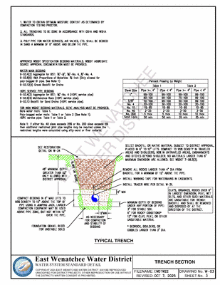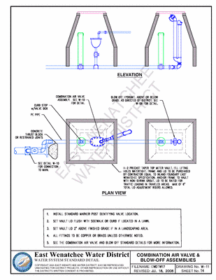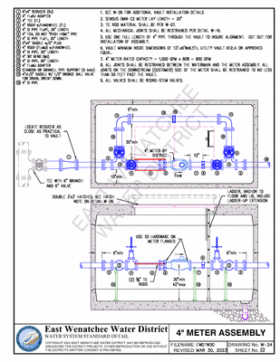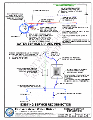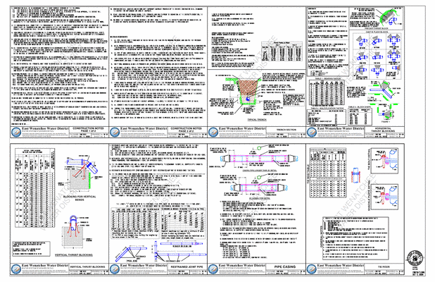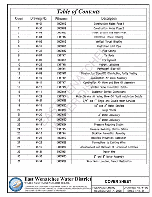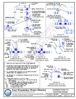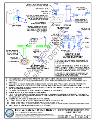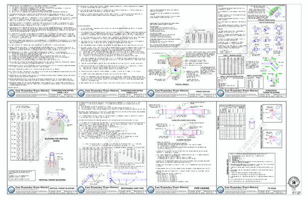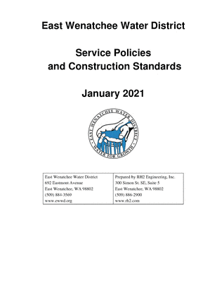 Developers and property owners, proposing a water main extension, must install the system expansion in accordance with plans and specifications approved by the District Engineer, and in accordance with the standards and conditions for constructing extensions to the water system adopted by the Board of Commissioners of the District. The Technical Specifications found here detail various types of installations that may be necessary to expand the District's existing system. If you have questions please contact the District office at ewwdonline@ewwd.org.